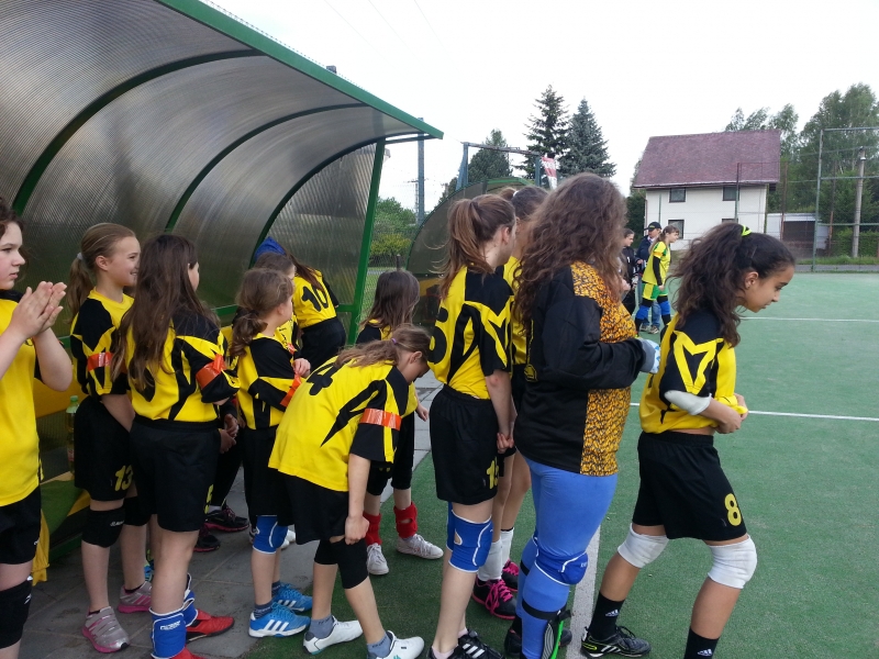 Nastoupili jsme v téměř plné sestavě, pouze bez chybějící druhé brankářky Elišky, která léčí naštípnutý prst. Elišku nahradila v brance Lucka, která by ji měla v této kategorii doplnit i v příští sezoně.