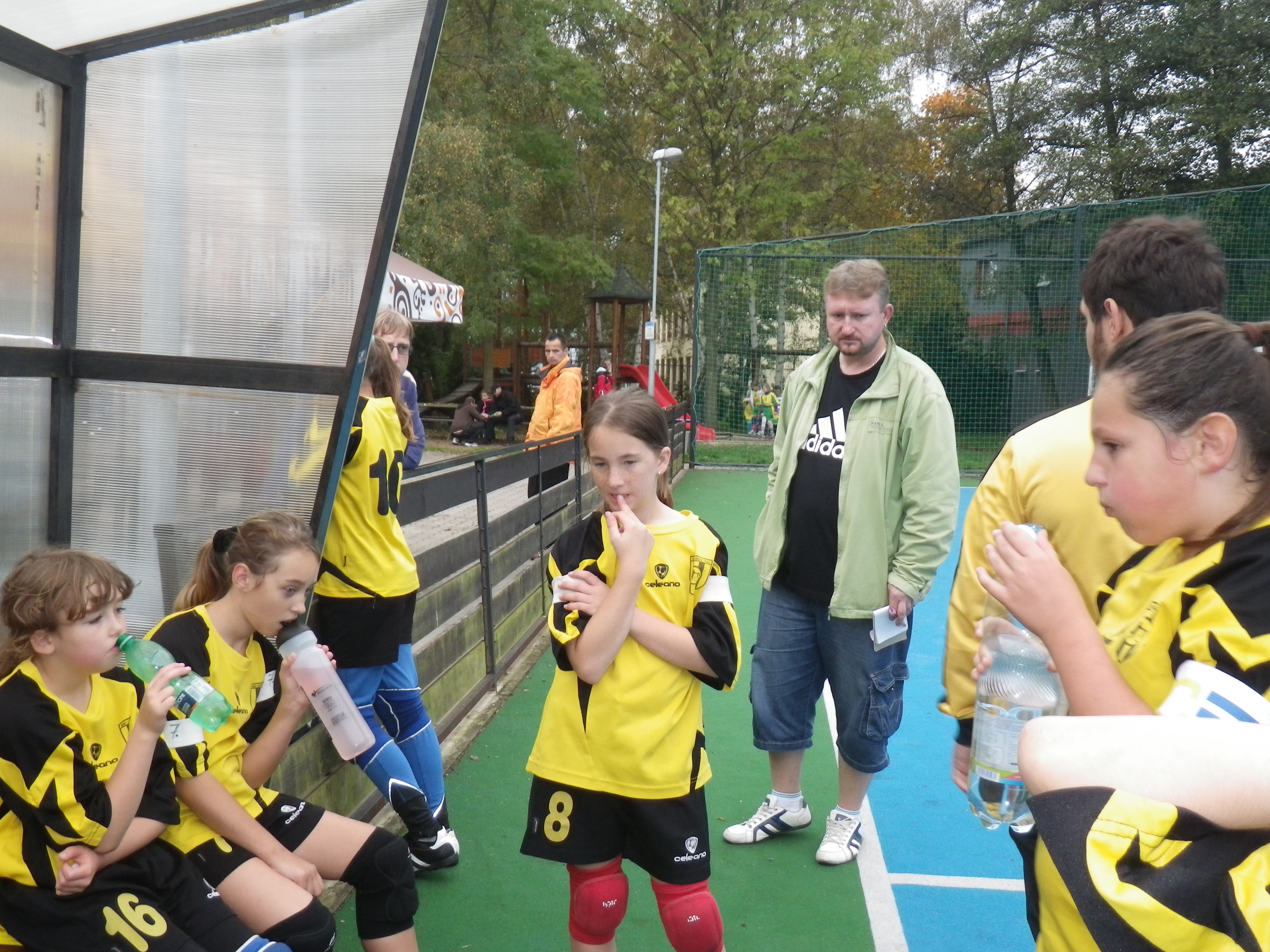 Jak již bylo zmíněno výše, na turnaj jsme odjeli bez nejlepší střelkyně. Gólově se to až do takové míry neprojevilo, na druhé straně kombinační hra v útoku nám dělala trochu problémy. Přeci jen Kačka s Terezou jsou sehrané a dokáží si to spolu „hodit“. Takže jsme se více než pohlednými akcemi na brankovišti soupeřek prosazovali po individuálních akcích zejména Kačky. Překvapením turnaje pro trenéra byla v útoku Ester, která se turnaj od turnaje zlepšuje. Tentokrát si vypracovala nespočet střeleckých příležitostí, ale spousta jich neskončila brankou. Na tomto aspektu bude jak Ester, tak i trenéři chtít zapracovat přes zimu, k čemuž budou mít během halové sezony ideální podmínky. Naplno se během turnaje také projevila nerozehranost Kláry, jejíž výkon by také měl kulminovat během halové sezony. Jako v předchozích turnajích se do střelecké listiny zapsaly také naše obránkyně. Již tradičně si svých deset kousků hodila Natálka, kterou tentokrát doplnila Lucka, Páťa a také brankářka Eliška, která si na jeden poločas vyměnila pozici s Kačkou, které se podařilo udržet čisté konto. Ve zmiňovaném poločase se do branky na posledních pět minut dostala i Ester, která asi vytvořila rekord, jelikož menšího brankáře snad nikdo nikdy neviděl, ale také se ji podařilo udržet čistý štít.