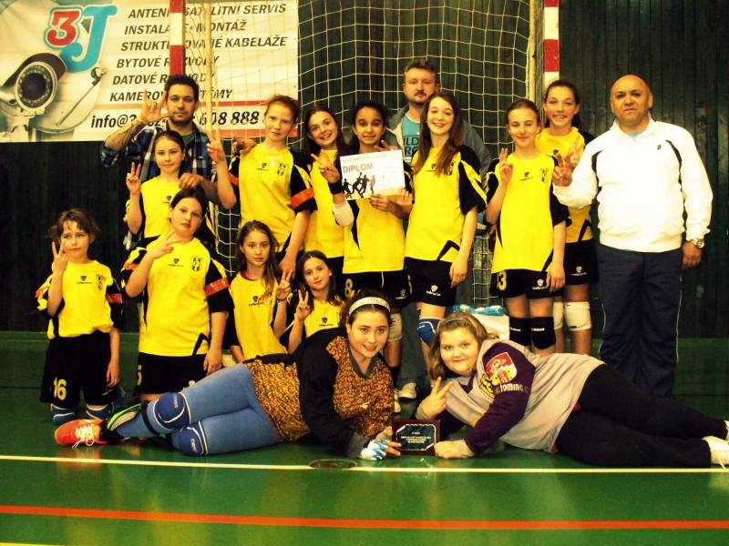 My i soupeři z Přeštic jsme věděli že tento zápas rozhodne to, kdo si domů odveze pohár nejcennější, tedy s jedničkou v jeho středu. Byli jsme to pouze my, kdo mohl děvčatům z Přeštic konkurovat, ač složení jejich týmu bralo dech – výškový průměr jejich mladších žaček byl vyšší než je má výška v 26. letech J a co se týče rychlosti, tam si myslím, že v závodě na 100 metrů bych, ač nejsem žádný lenochod, měl problémy i já. Nicméně v rychlosti jsme tolik nezaostávali, v nohách jsme měli krutou zimní přípravu a naší předností měla být bojovnost. Holkám jsme sice říkali, že jsou nejlepší a jestli chtějí vyhrát, tak musí do zápasu vstoupit jako vítězky a hrát na 200%, bohužel nástup do zápasu byl katastrofální. Po pěti minutách a stavu 5:1 kdy na hřišti bylo pouze jedno mužstvo, jsme viděli, že je zle a že kromě vynikajících soupeřek nás v tomto zápase porazí i vlastní nervy. Když se k tomu přidala opět chabá forma naší brankářky, kdy v první polovině si sáhla na balón pouze tehdy, kdy ho lovila ze sítě bylo jasno. Já měl v hlavě pouze jednu myšlenku – bože ať to není debakl. Naštěstí i hráčky na hřišti, které viděli že pro první místo si dnes nedojdeme, odhodili strach a nervozitu a přidali, výsledek tak nevypadal až tak hrozivě jako naše hra, která vlastně nebyla ani naše. To nic nemění na precizním výkonu Přeštických děvčat, se kterými jsme vlastně sehráli od září, kdy začala sezona, první zápas který nás pořádně prověřil. V tom je bohužel naše nevýhoda – hrajeme v oblasti, kde nemáme žádnou konkurenci.